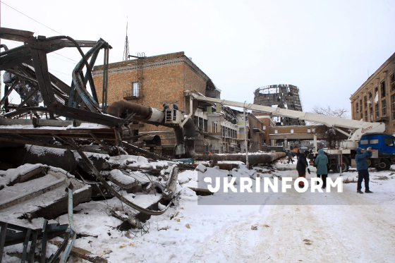 Представники ЗМІ оглядають наслідки руйнувань Київської ТЕЦ-4, яка після масованої російської атаки у ніч на 3 лютого зупинила роботу, Київ, 6 лютого, 2026 року. У ніч з 2 на 3 лютого війська РФ атакували теплове господарство Київської ТЕЦ-4 (Дарницької ТЕЦ) п`ятьма балістичними ракетами. Станція зазнала критичних руйнувань і була повністю зупинена. Без опалення та гарячої води за температури повітря -25°C залишилися 1129 житлових будинків Дніпровського та частини Дарницького районів, 46 шкіл, 72 дитячі садки, 18 медичних закладів та інші об`єкти соціальної і міської інфраструктури.