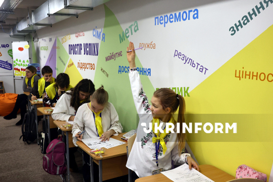 Учні однієї з підземних шкіл, яку відвідали учасники зустрічі представників Асоціації прифронтових міст та громад (АПМГ) з делегацією представників Посольств країн Північно-Балтійського регіону, Харків, 5 березня 2026 року.