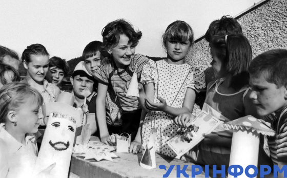 У піонерському таборі "Романтик" дітьми-чорнобильцями опікується піонервожата Тетяна Бобрюк (у центрі), Київська область, 13 липня 1986 року. Фото Георгія Удовиченка.