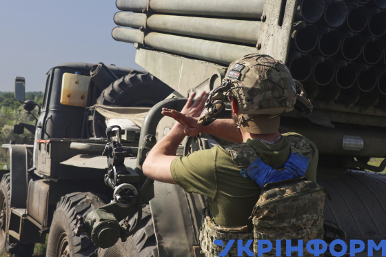 Боєць розрахунку БМ-21 "Град" 30-ї окремої механізованої бригади імені князя Костянтина Острозького під час виконання бойового завдання на Донецькому напрямку, 3 червня 2025 року.