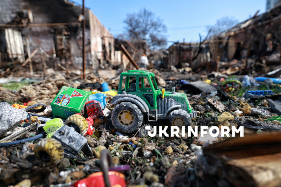 Дитячі іграшки лежать на території зруйнованого внаслідок чергової російської атаки БпЛА житлового будинку в Одесі, 28 березня 2026 року. Внаслідок нічної атаки РФ загинули двоє людей, постраждали 12 людей, серед яких – дев`ятирічний хлопчик. Російська армія атакувала ударними дронами житлові будинки, інфраструктуру, а також – Комунальне некомерційне підприємство “Пологовий будинок №5”.