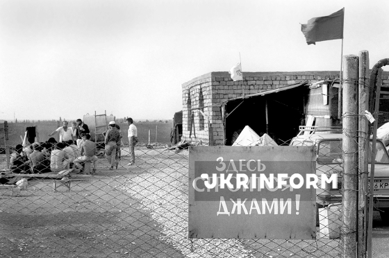 Кримські татари, які прибули з вигнання на батьківщину, зустріли новий рік при світлі гасових ламп у самовільних недобудовах у долині ріки Салгир, неподалік від села Лозового, оскільки місцева влада ігнорує права репатріантів на землю, Кримська область, грудень 1990 року. Фото Олександра Обуховського.
