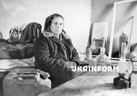 Діляра Мустафаєва, яка прибула з вигнання на батьківщину, зустріла новий рік при світлі гасових ламп у самовільній недобудові в долині ріки Салгир, неподалік від села Лозового, оскільки місцева влада ігнорує права репатріантів на землю, Кримська область, грудень 1990 року. Фото Олександра Обуховського.