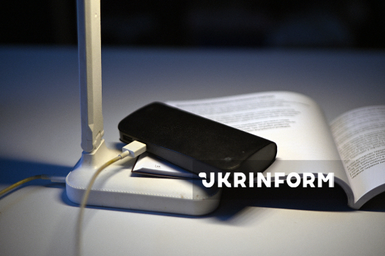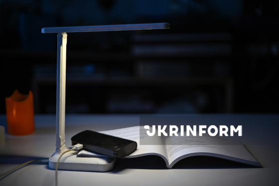 Світильник заряджається від портативного зовнішнього акумулятора "повербанка", Київ, 11 січня 2026 року. Через регулярні обстріли критичної інфраструктури України запроваджено відключення світла. Активно використовуються газові балони, туристичні пальники для обігріву та приготування їжі, портативні джерела (повербанки, зарядні станції, генератори) для зв’язку, а також ліхтарики та свічки для освітлення.