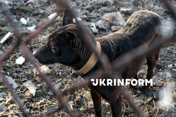Пес із закривавленим оком, пошкодженим внаслідок російської дронової атаки, селище Олександрівка, Одеська область, 21 січня 2026 року.