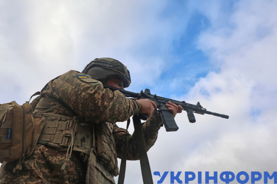 Боєць 13-ї бригади оперативного призначення НГУ "Хартія" бере участь у віпрацюванні стрільб із використанням гвинтівки UAR-15, Харківська область, 13 жовтня 2025 року.