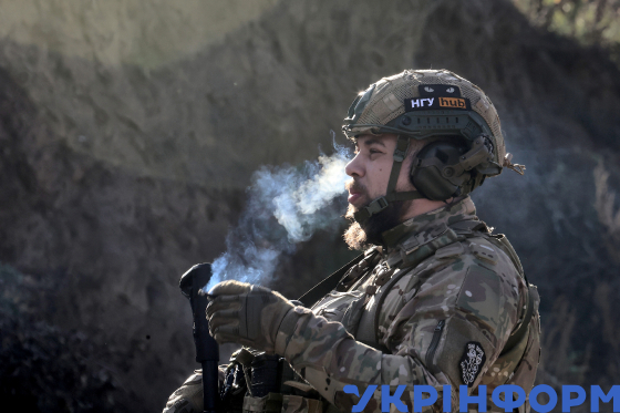 Боєць 13-ї бригади оперативного призначення НГУ "Хартія" бере участь у віпрацюванні стрільб із використанням гранатомета "Форт-600" вітчизняного виробництва, Харківська область, 13 жовтня 2025 року.