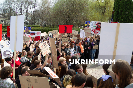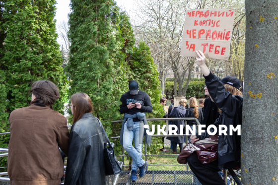 Студенти Київського національного університету імені Тараса Шевченка протестують проти ректора Володимира Бугрова після появи у мережі секс-відео нібито з ним в одній з аудиторій університету, Київ, 1 квітня 2026 року. Також студенти не задоволені комунікацією адміністрації, станом гуртожитків і корпусів університету.
