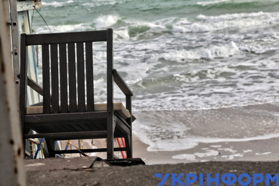 Дерев’яний стілець біля Чорного моря, Одеса, 20 грудня 2023 року.