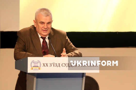 Голова Верховного Суду Станіслав Кравченко виступає з промовою під час XX чергового з’їзду суддів України, Київ, 10 березня 2026 року. У межах засідання обговорили завдання органів суддівського самоврядування щодо забезпечення незалежності судів та суддів, а також стан організаційного та фінансового забезпечення діяльності судів. Серед ключових питань, винесених на порядок денний, - обрання двох представників до Вищої ради правосуддя та обрання нового складу Ради суддів України.