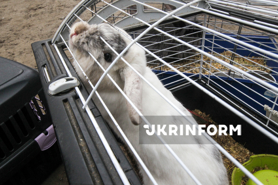 Кролик у клітці, якого хазяї винесли під час евакуації з пошкодженого внаслідок влучання російського БпЛА 14-поверхового будинку, Дніпро, 24 березня 2026 року. Вдень російські війська атакували місто ударними дронами. Внаслідок обстрілу постраждало 13 людей, троє з них – дівчатка віком 12 і 9 років та півторарічний хлопчик.