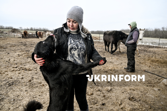 Волонтер Пета поруч із тваринами, яких евакуювали з Оріхова до притулку "Пегас", Дніпропетровська область, 6 лютого 2026 року. На Запоріжжі триває евакуація людей та тварин. Волонтери вивезли з прифронтового Оріхова до притулку для тварин "Пегас" на Дніпропетровщині дев’ять кіз.