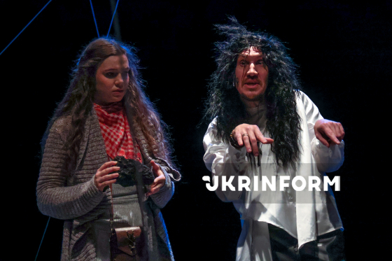 Актори Першого недержавного театру Донеччини “Terra Incognita” грають ролі у виставі “Maidan Inferno. Містерія на одну дію”, присвяченій Революції Гідності, за п`єсою драматургині Неди Нежданої та у постановці маріупольського режисера Анатолія Левченка на Камерній сцені імені Сергія Данченка Національного академічного драматичного театру імені Івана Франка, Київ, 21 листопада 2025 року.