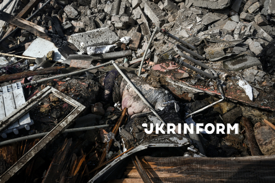 ОБЕРЕЖНО, ЧУТЛИВИЙ КОНТЕНТ. Тіло загиблої внаслідок російського удару дронами по приватному сектору лежить на руїнах приватного будинку, Запоріжжя, 16 березня 2026 року. Російська армія атакувала ударними дронами приватний сектор. Внаслідок обстрілу загинула 68-річна жінка. Також рятувальники деблокували з-під завалів житлового будинку поранених дівчину 2010 року народження та жінку-інваліда 1987 року народження.