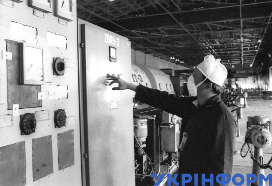 Машиніст парових турбін Зеліков проводить контрольну перевірку систем турбогенератора Чорнобильської атомної електростанції, Київська область, травень 1986 року. Фото Валерія Зуфарова.