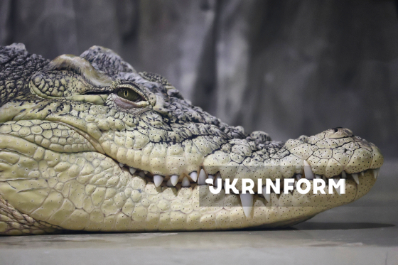 Крокодил у вольєрі на території Харківського зоопарку, Харків, 4 листопада 2025 року.