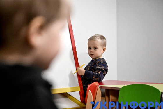 Хлопчик малює на дошці під час заняття у закладі дошкільної освіти (ясла-садок) №100 “Гармонія”, Запоріжжя, 21 жовтня 2025 року. Вперше з початку повномасштабного вторгнення РФ в Україну у Запоріжжі відновили роботу тринадцять ясельних груп для дітей до трьох років у дев`яти закладах дошкільної освіти. Працюють вони у скороченому режимі — до трьох годин.