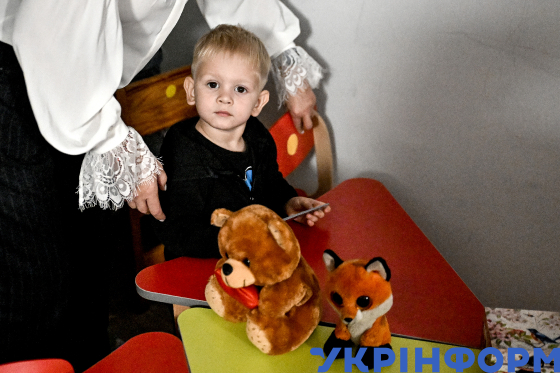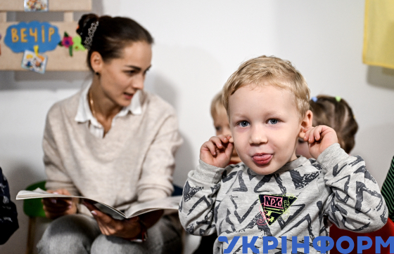 Хлопчик позує для фото під час заняття у закладі дошкільної освіти (ясла-садок) №100 “Гармонія”, Запоріжжя, 21 жовтня 2025 року. Вперше з початку повномасштабного вторгнення РФ в Україну у Запоріжжі відновили роботу тринадцять ясельних груп для дітей до трьох років у дев`яти закладах дошкільної освіти. Працюють вони у скороченому режимі — до трьох годин.