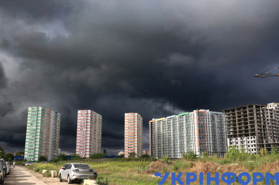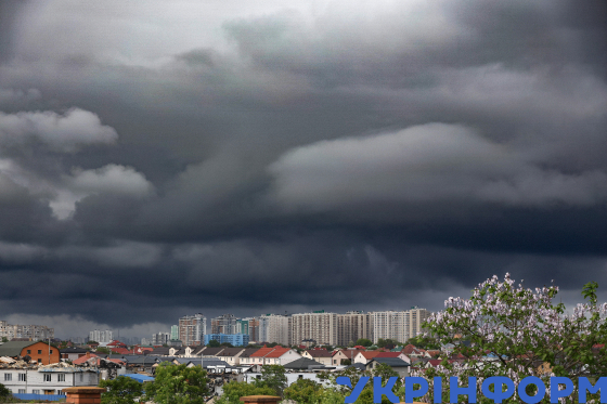 Темно-сині хмари над спальним районом Одеси, 28 травня 2025 року.