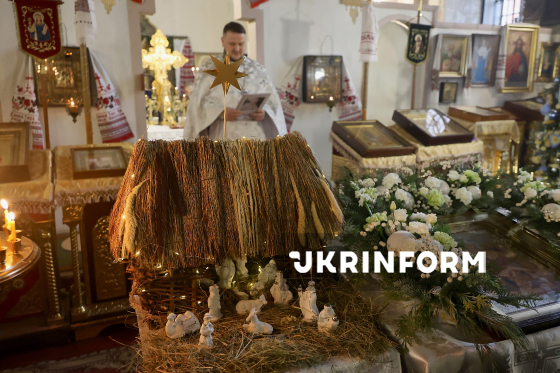 Шопка у Іоано-Богословському храмі, де відбулася літургія з нагоди Різдва, Харків, 25 грудня 2025 року.