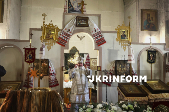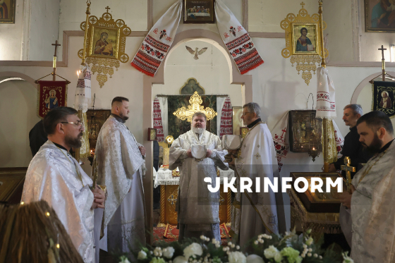 Священнослужитель проводить літургію з нагоди Різдва в Іоано-Богословському храмі, Харків, 25 грудня 2025 року.