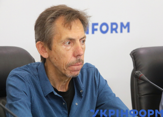 Д.ф.м.н., керівник проєкту, модератор Максим Стріха під час пресконференції на тему: "Презентація звіту щодо відповіді українського експертного середовища на російську дезінформацію у ядерній сфері України", Київ, 30 травня 2024 року.
