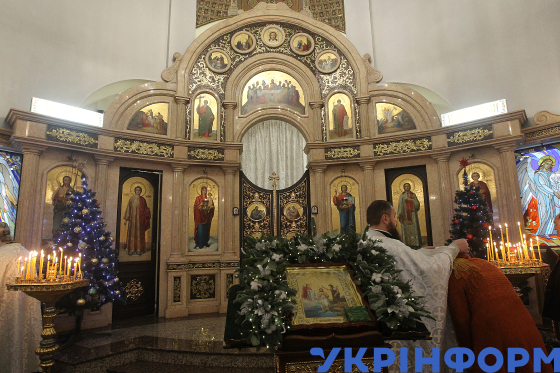 Іконостас у єпархіальному храмі на честь ікони Богородиці “Несподівана Радість”, Дніпро, 6 січня 2025 року.