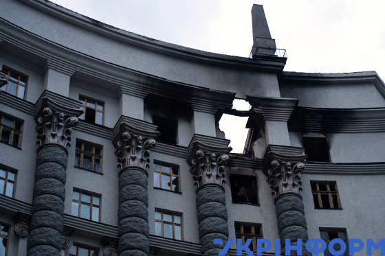 Будівля Кабінету Міністрів України після російської атаки, Київ, 8 вересня 2025 року.