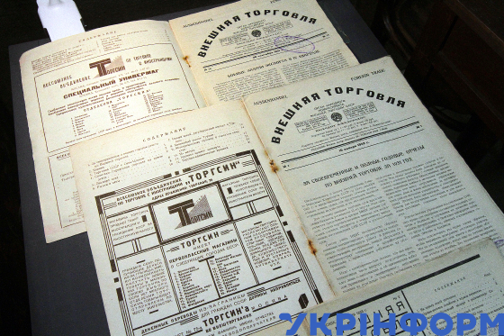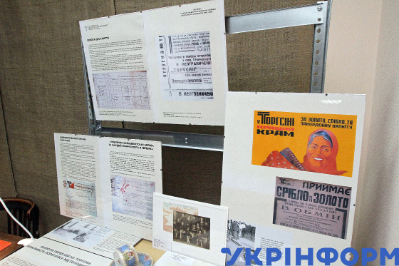 Експонати виставки "Торгсин на Дніпропетровщині: сторінки історії епохи Голодомору (1931-1935)" до Дня пам’яті жертв Голодоморів у Музеї спротиву Голодомору, Дніпро, 13 листопада 2024 року.