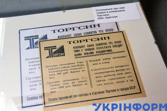 Експонат виставки "Торгсин на Дніпропетровщині: сторінки історії епохи Голодомору (1931-1935)" до Дня пам’яті жертв Голодоморів у Музеї спротиву Голодомору, Дніпро, 13 листопада 2024 року.