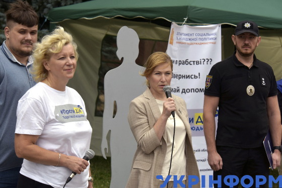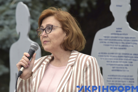 Директор Департаменту соціальної та молодіжної політики Вінницької ОВА Світлана Ярмоленко під час відкриття обласної інформаційно-просвітницької акції “Вінниччина проти торгівлі людьми” у Всесвітній день боротьби з торгівлею людьми, Вінниця, 30 липня 2024 року.