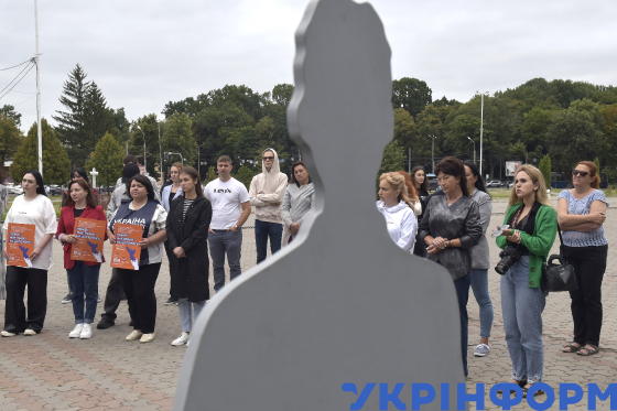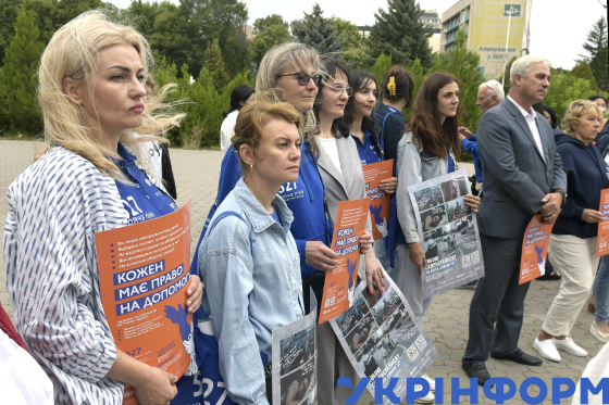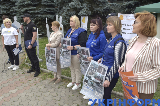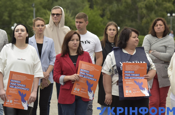 Учасники відкриття обласної інформаційно-просвітницької акції “Вінниччина проти торгівлі людьми” у Всесвітній день боротьби з торгівлею людьми, Вінниця, 30 липня 2024 року.
