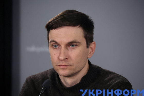 Архітектор, співзасновник платформи урбаністичного розвитку Віктор Дворніков під час пресконференції щодо будівництва ресторану біля будівлі гуртожитку Харківського політехнічного інституту, також відомої як "Гігант", яка є пам’яткою архітектури в стилі конструктивізму, Харків, 23 січня 2025 року.
