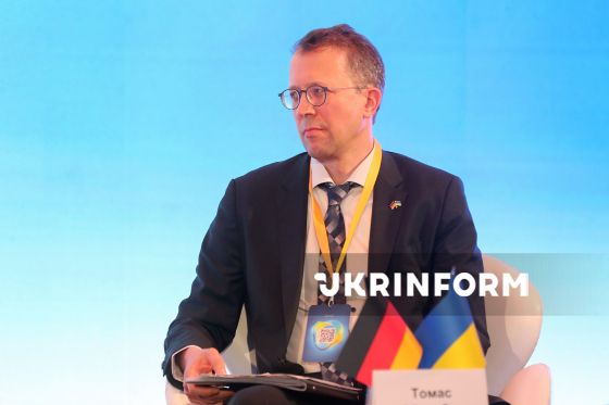 Керівник відділу енергетики та природних ресурсів у країнах Східної Європи, Кавказу та Центральної Азії департаменту розвитку банку KfW Томас Айзенбах бере участь у Німецько-українському енергетичному дні-2026, у межах якого українські та європейські урядовці, представники енергетичного бізнесу та експерти говорили про відновлення енергетичної системи України та її інтеграцію до енергетичного ринку Європи, Київ, 12 березня 2026 року. Захід відбувся в межах енергетичного партнерства між Україною та Німеччиною.