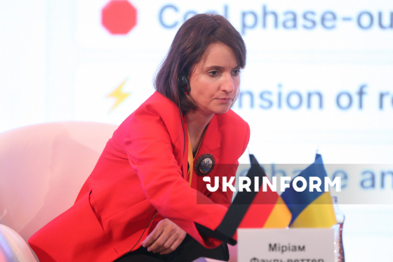 Директорка Power4JustTransition GIZ Ukraine Міріам Фаульветтер бере участь у Німецько-українському енергетичному дні-2026, у межах якого українські та європейські урядовці, представники енергетичного бізнесу та експерти говорили про відновлення енергетичної системи України та її інтеграцію до енергетичного ринку Європи, Київ, 12 березня 2026 року. Захід відбувся в межах енергетичного партнерства між Україною та Німеччиною.