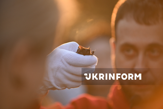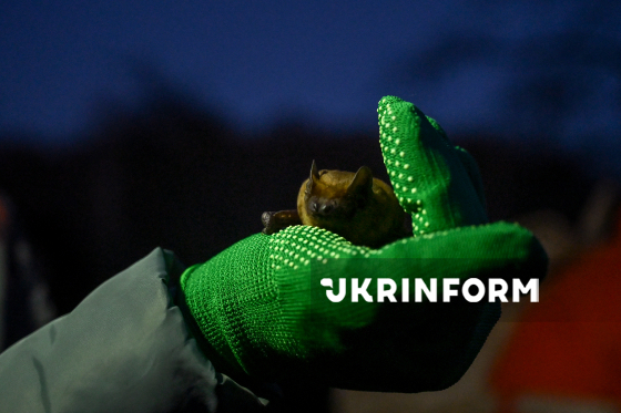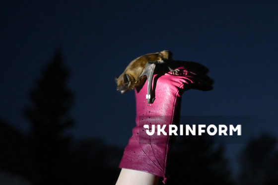 Волонтер Українського центру реабілітації рукокрилих випускає у природу врятованих восени-взимку кажанів на території Національного природного парку “Голосіївський”, Київ, 4 квітня 2026 року. Цієї зими зоозахисники Українського центру реабілітації рукокрилих врятували понад 500 кажанів у Києві та області. На території НПП “Голосіївський” для них встановили спеціальні будиночки.