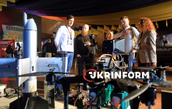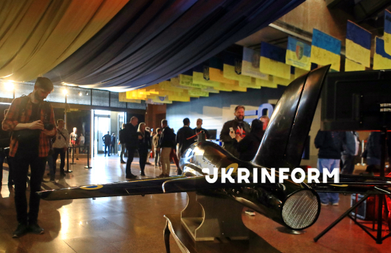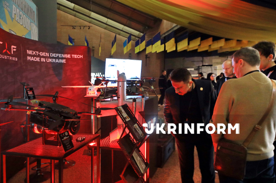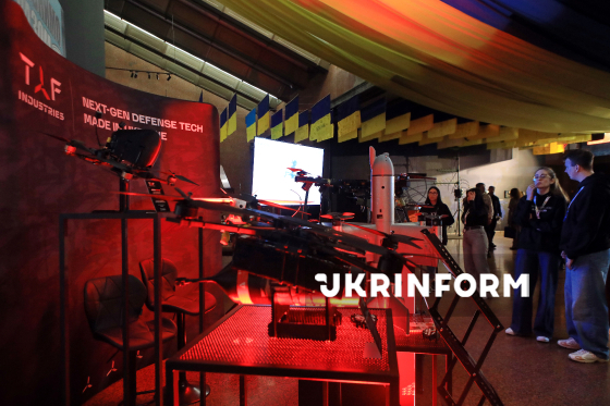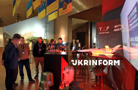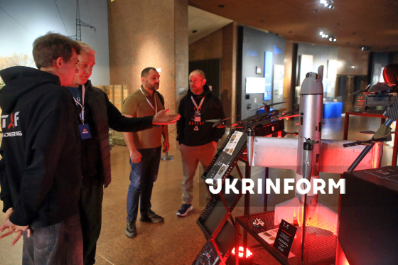 Відвідувачі оглядають виставку виробів безпілотних систем під форуму виробників безпілотних систем “CRITICALLY PROTECTED. ARMADA TECH DAY”, Київ, 27 березня 2026 року.