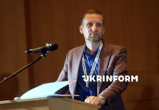 Засновник і голова Асоціації виробників безпілотних систем та супутніх технологій "АРМАДА" Василь Гончарук виступає під час форуму виробників безпілотних систем “CRITICALLY PROTECTED. ARMADA TECH DAY”, Київ, 27 березня 2026 року.