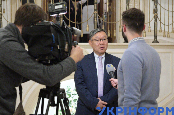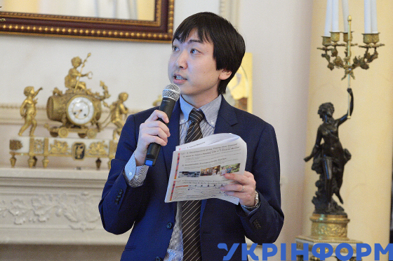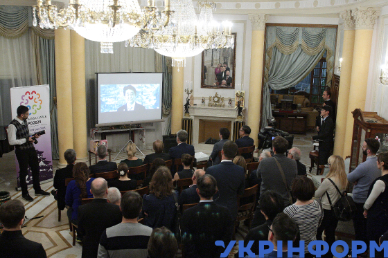Під час презентації та прийому на підтримку кандидатури Японії на проведення Всесвітньої виставки 2025 у місті Кансай (Осака) у резиденції Посла Японії, Київ, 2 листопада 2018 року.