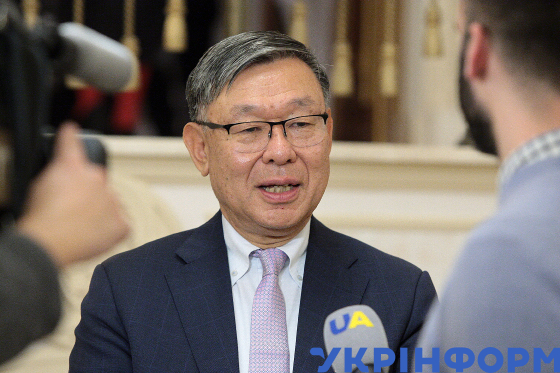 Надзвичайний та Повноважний Посол Японії в Україні Шігекі Сумі під час презентації та прийому на підтримку кандидатури Японії на проведення Всесвітньої виставки 2025 у місті Кансай (Осака) у резиденції Посла Японії, Київ, 2 листопада 2018 року.