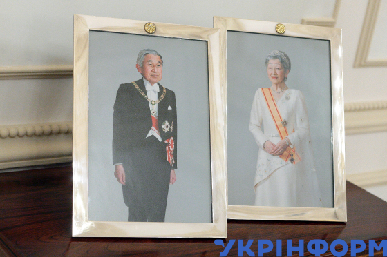 Фотографії імператора Японії Акіхіто та імператриці Мітіко у Резиденції Посла Японії в Україні під час презентації та прийому на підтримку кандидатури Японії на проведення Всесвітньої виставки 2025 у місті Кансай (Осака), Київ, 2 листопада 2018 року.