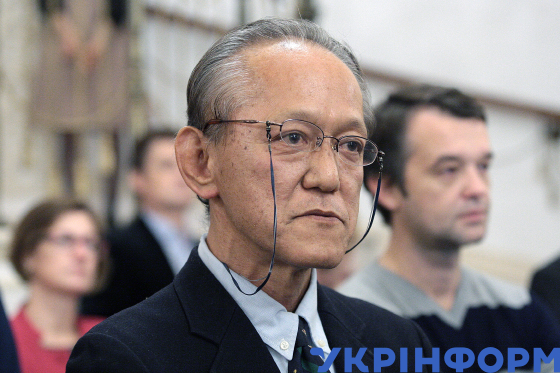 Надзвичайний та Повноважний Посол Японії в Україні Шігекі Сумі під час презентації та прийому на підтримку кандидатури Японії на проведення Всесвітньої виставки 2025 у місті Кансай (Осака) у резиденції Посла Японії, Київ, 2 листопада 2018 року.
