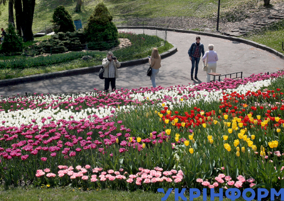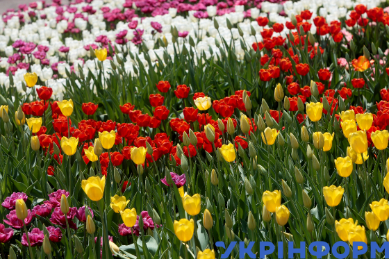 Виставка тюльпанів на Співочому полі у Печерському ландшафтному парку "Співоче", Київ, 25 квітня 2019 року.
