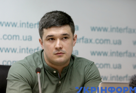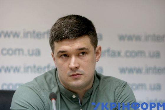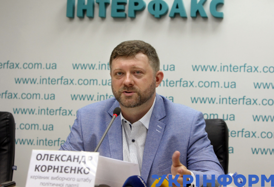 Керівник виборчого штабу політичної партії "Слуга народу" Олександр Корнієнко під час спільної пресконференції новообраних на з’їзді політичної партії "Слуга народу" керівників щодо початку дострокових парламентських виборів, Київ, 27 травня 2019 року.