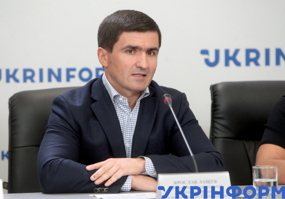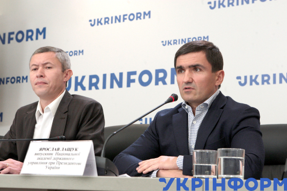 Випускник Національної академії державного управління при Президентові України Ярослав Лащук під час пресбрифінгу на тему: "Збереження та модернізація Національної академії державного управління при Президентові України" в Українському національному інформаційному агентстві "Укрінформ", Київ, 12 липня 2019 року.