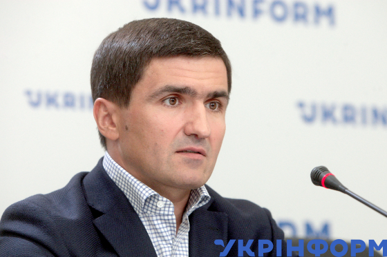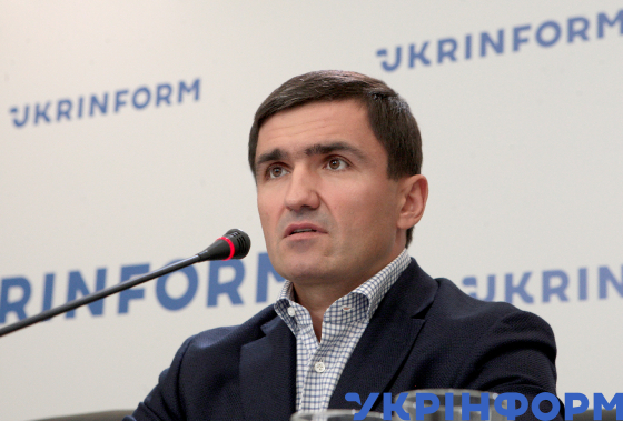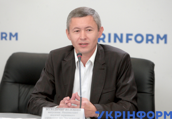 Випускник Національної академії державного управління при Президентові України Володимир Волошин під час пресбрифінгу на тему: "Збереження та модернізація Національної академії державного управління при Президентові України" в Українському національному інформаційному агентстві "Укрінформ", Київ, 12 липня 2019 року.