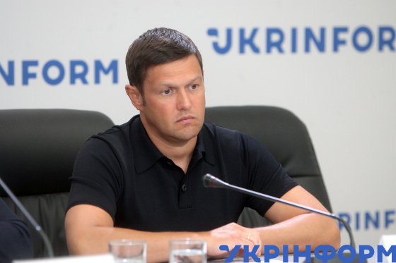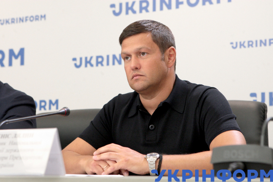 Випускник Національної академії державного управління при Президентові України Деніс Лялин під час пресбрифінгу на тему: "Збереження та модернізація Національної академії державного управління при Президентові України" в Українському національному інформаційному агентстві "Укрінформ", Київ, 12 липня 2019 року.