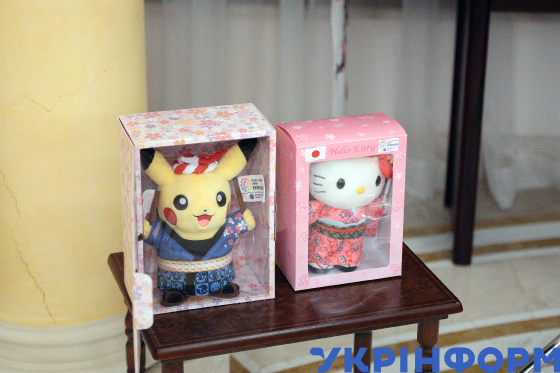 Персонажі японських мультфільмів Pokemon Pikachu і Hello Kitty, обрані талісманами заявки Осаки на проведення Всесвітньої виставки 2025, під час презентації та прийому на підтримку кандидатури Японії на проведення Всесвітньої виставки 2025 у місті Кансай (Осака) у резиденції Посла Японії, Київ, 2 листопада 2018 року.