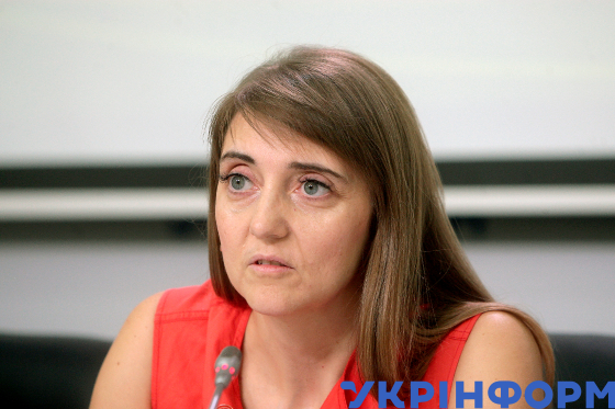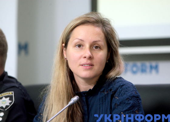 Директорка, головна лікарка КНП "Київський міський центр громадського здоров’я" Олена Лукашевич під час пресконференції на тему: "Чому гинуть люди на пішохідних переходах та як цьому запобігти?" в Українському національному інформаційному агентстві "Укрінформ", Київ, 29 серпня 2019 року.
