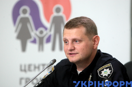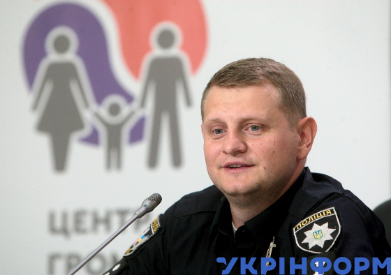 Старший лейтенант поліції, інспектор відділу зв’язків з громадськістю Управління патрульної поліції в місті Києві Сергій Багаліка під час пресконференції на тему: "Чому гинуть люди на пішохідних переходах та як цьому запобігти?" в Українському національному інформаційному агентстві "Укрінформ", Київ, 29 серпня 2019 року.